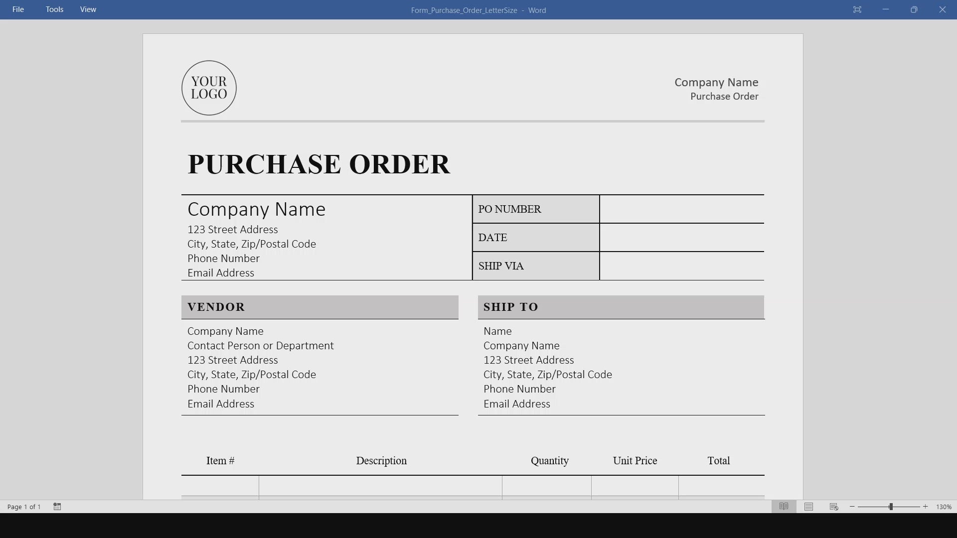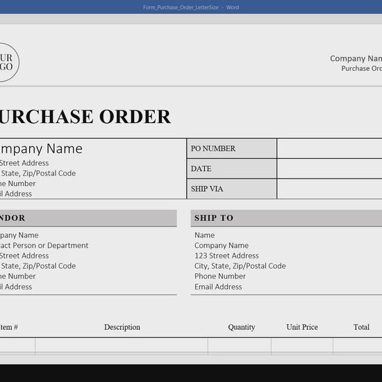 - Fully editable Purchase Order Template in Microsoft Word (.docx)
