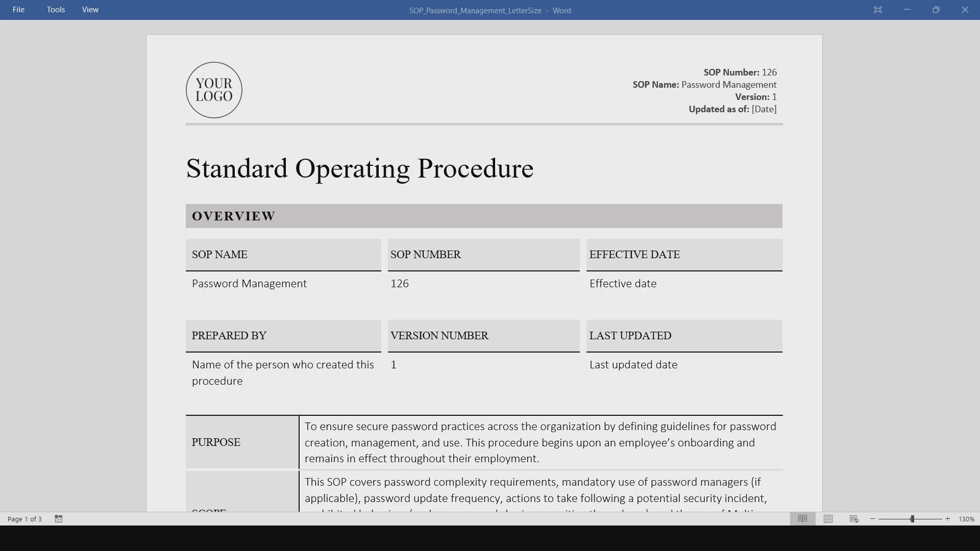 Password Management SOP Template (Word & PDF) – Simple Standard Operating Procedure Template