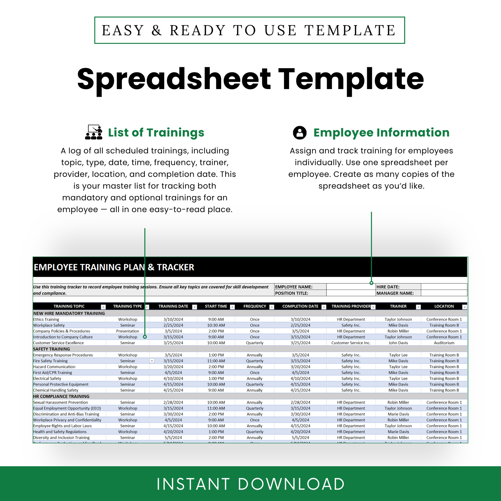 Keep employee training organized, compliant, and on track with this easy-to-use Employee Training Plan & Tracker.
