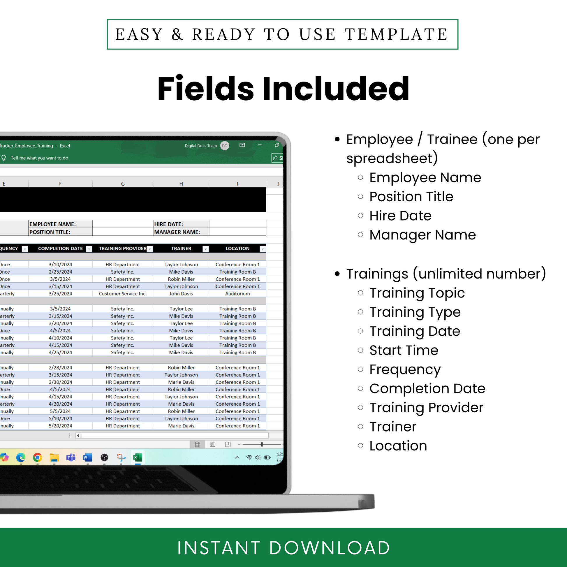 - Fully editable Employee Training Tracker Excel Sheet (.xlsx)